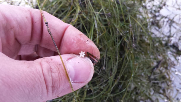 Starry Stonewort is believed to be spread from one body of water to another by the unintentional transfer of plant fragments and bulbils, the star-like structures produced by the plant.